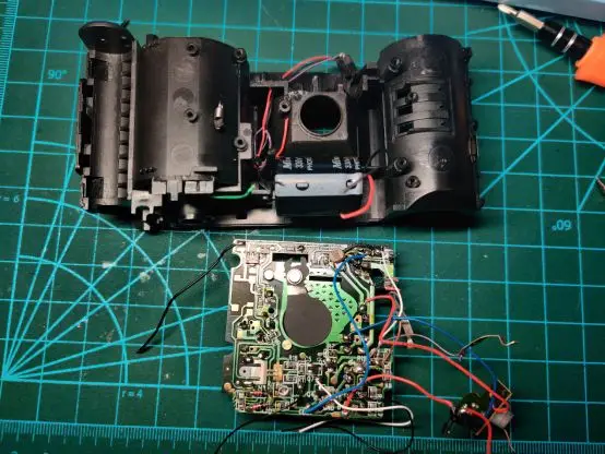 Below is another small circuit board, used to connect the large circuit board to the flash capacitor and motor.