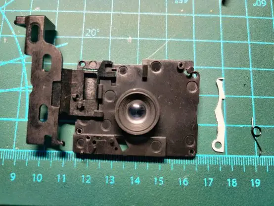 After removing the large circuit board, we can see the main plastic frame inside the camera.